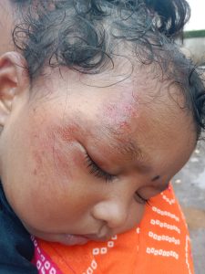 दरम्यान, डोंगरसोनी रोड वर असणाऱ्या पोद्दार जम्बो किड्स स्कूल व्हॅनने सदर दुचाकीला मागून जोरदार धडक दिल्यामुळे कांबळे दांपत्य आपल्या एक वर्षाच्या मुलासह रस्त्यावर गाडी सहित जोरदार आपटले. रस्त्यावर चिमुरड्या सार्थकचे डोके जोरदार आदळल्यामुळे त्याला गंभीर दुखापत झाली आहे. तसेच या अपघातात सतीश मारुती कांबळे व त्यांची पत्नी आरती कांबळे दोघेही गंभीर जखमी झाले आहेत.