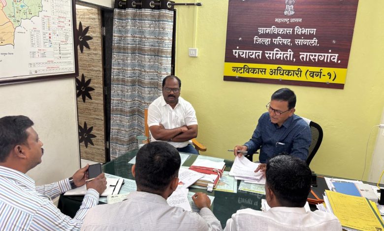 भाजपाचे तासगाव तालुका अध्यक्ष अॅड. स्वप्नील पाटील यांनी तालुक्यातील विविध महत्त्वाच्या प्रश्नांवर तोडगा निघावा तसेच शासकीय योजना तळागाळातील जनतेपर्यंत पोहोचाव्यात या उद्देशाने पंचायत समिती तासगावचे गटविकास अधिकारी अविनाश पाटील यांची भेट घेऊन सविस्तर चर्चा केली.